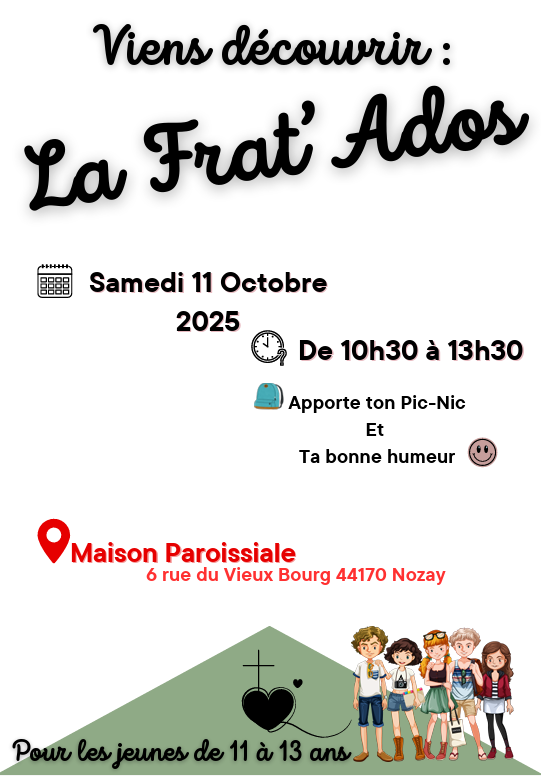 Tu es collégien en classe de 6°, 5° ou 4°, nous serons heureux de t’accueillir à la Frat’Ados