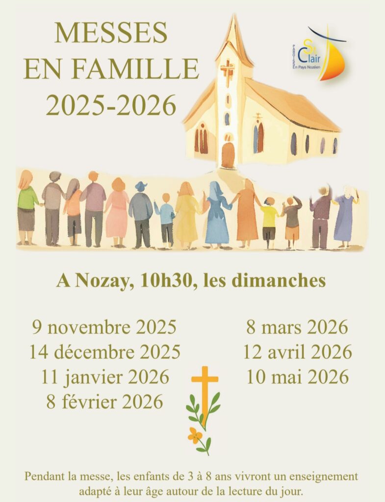 Comme chaque deuxième dimanche du mois, retrouvons-nous pour la Messe en famille à 10h30 en l’église de Nozay ce dimanche 9 novembre !