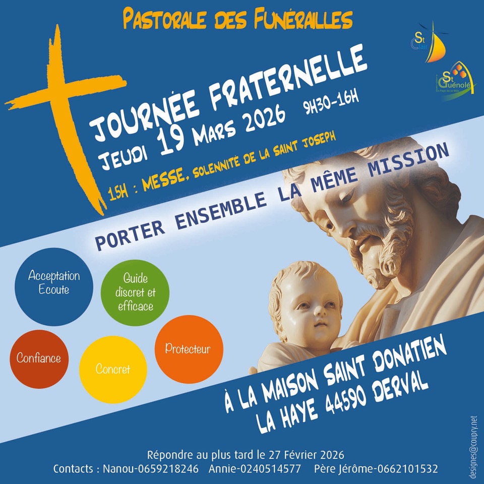 Journée Pastorale des Funérailles : Jeudi 19 mars 2026 de 9h30 à 16h à la Maison Saint-Donatien – La Haye à DERVAL.